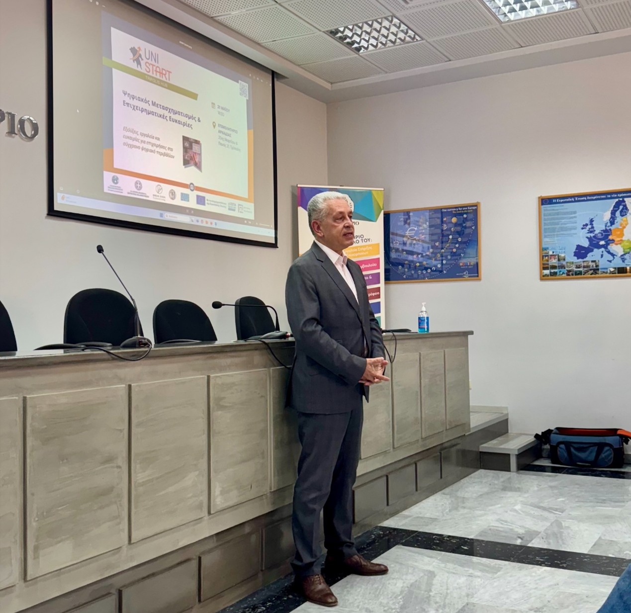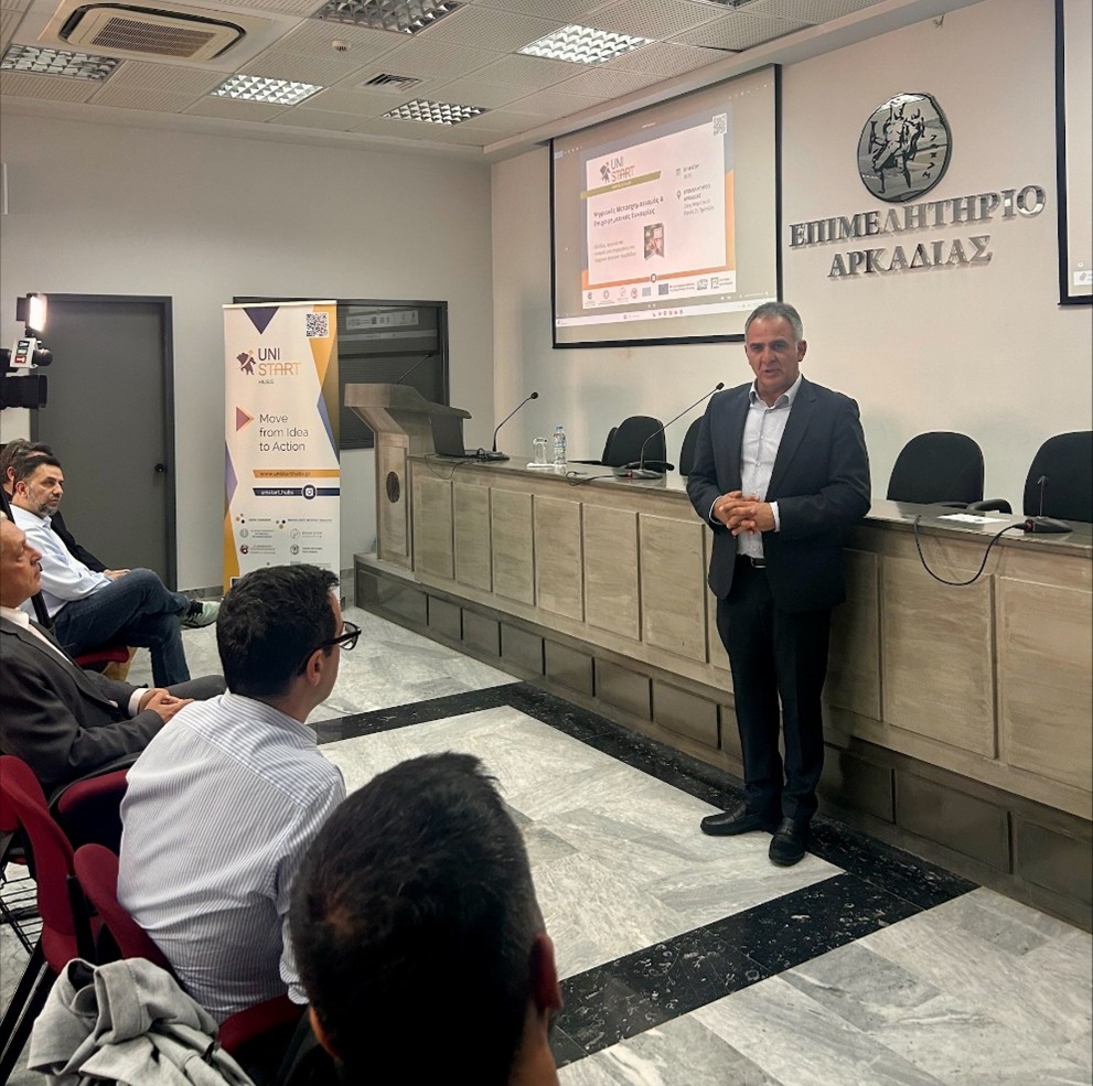 Με επιτυχία πραγματοποιήθηκε η 9η εκδήλωση ενημέρωσης κοινού των Unistart Hubs, με τίτλο «Ψηφιακός Μετασχηματισμός και Επιχειρηματικές Ευκαιρίες», την Τετάρτη 21 Μαΐου 2025, στην αίθουσα εκδηλώσεων του Επιμελητηρίου Αρκαδίας στην Τρίπολη. Η εκδήλωση επικεντρώθηκε στον ρόλο των τεχνολογικών εξελίξεων και της καινοτομίας στη διαμόρφωση νέων επιχειρηματικών ευκαιριών για μικρές και μεσαίες επιχειρήσεις, προσελκύοντας σημαντικό ενδιαφέρον από τον επιχειρηματικό και ακαδημαϊκό κόσμο της περιοχής.