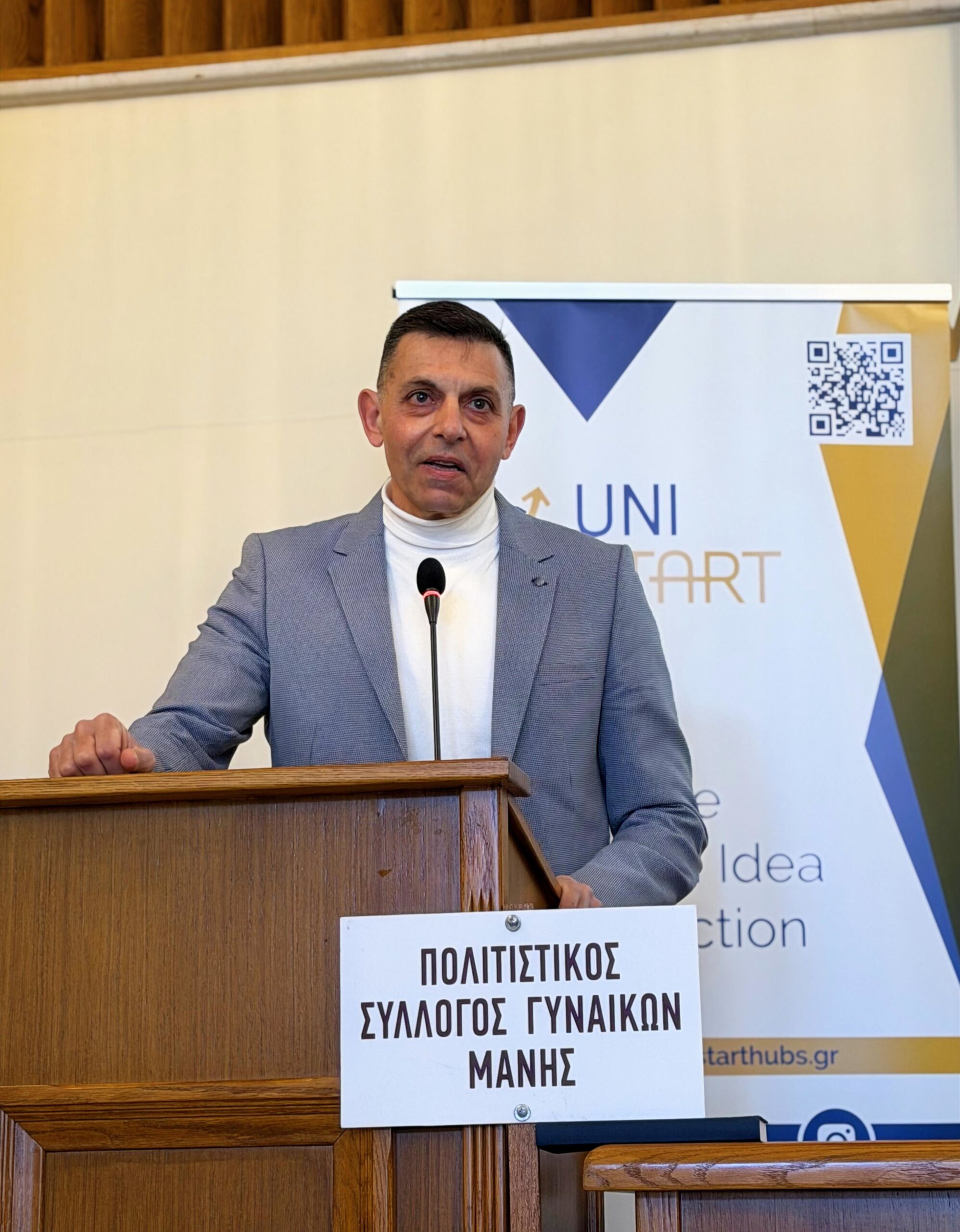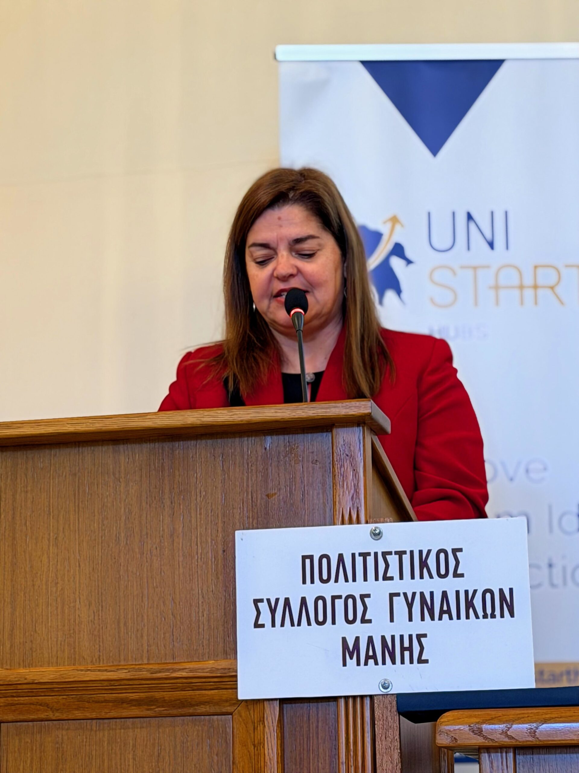 Την εκδήλωση άνοιξε η κα Χρύσα Μάνδρου, εκπροσωπώντας τον Πολιτιστικό Σύλλογο Γυναικών Μάνης, η οποία αναφέρθηκε στην αξία της ενδυνάμωσης των γυναικών στην τοπική οικονομία και στη δυναμική που δημιουργείται όταν η εκπαίδευση και η επιχειρηματικότητα συναντώνται. Χαιρετισμό απηύθυνε η Βουλευτής Λακωνίας κα Νάγια Γρηγοράκου, η οποία υπογράμμισε ότι η γυναικεία επιχειρηματικότητα αποτελεί βασικό πυλώνα κοινωνικής και οικονομικής προόδου. Στη συνέχεια, ο κ. Αντώνης Ψαράκης, Προϊστάμενος της Ειδικής Υπηρεσίας Διαχείρισης Πελοποννήσου, ανέδειξε την καινοτομία ως στρατηγικό εργαλείο περιφερειακής πολιτικής και παρουσίασε το Γραφείο Καινοτομίας της Περιφέρειας Πελοποννήσου και τον ρόλο του στη σύνδεση της έρευνας με τις ανάγκες της αγοράς. Στην εκδήλωση παρευρέθηκε, εκπροσωπώντας το Δημοτικό Συμβούλιο Ανατολικής Μάνης, η κα Σταυρούλα Μπεκάκου. Παράλληλα, επιστολές απέστειλαν ο Υφυπουργός Εθνικής Άμυνας κ. Θανάσης Δαβάκης και ο Βουλευτής Λακωνίας κ. Νεοκλής Κρητικός, οι οποίοι εξέφρασαν τη στήριξή τους σε πρωτοβουλίες που ενισχύουν την επιχειρηματικότητα, την καινοτομία και τη βιώσιμη περιφερειακή ανάπτυξη.