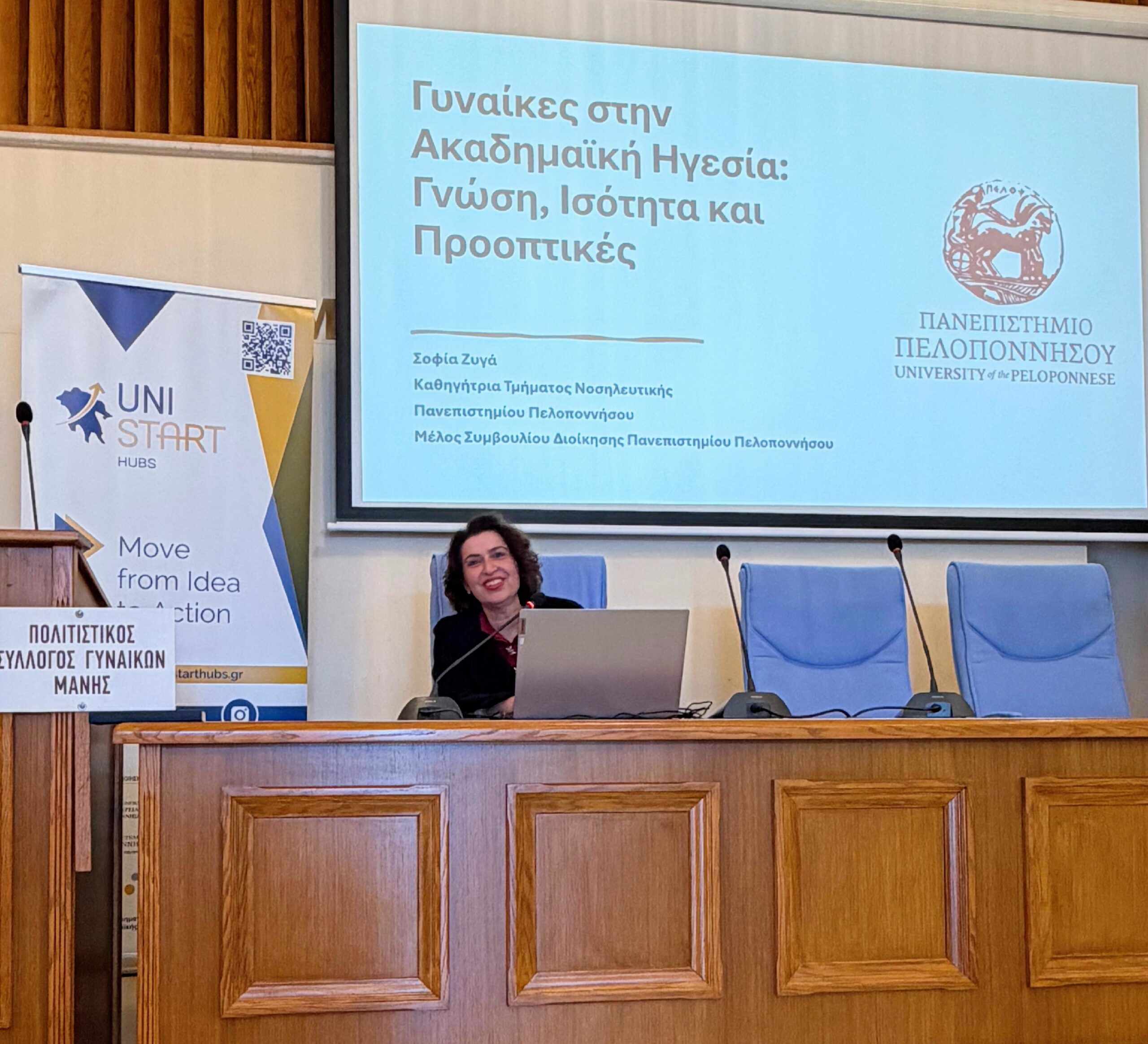 Ακολούθησε σύντομη παρουσίαση των δράσεων των UniStart Hubs, όπου αναδείχθηκε η συμβολή τους στη γεφύρωση της ακαδημαϊκής γνώσης με την τοπική επιχειρηματικότητα και στην καλλιέργεια κουλτούρας καινοτομίας. Ιδιαίτερη βαρύτητα είχε η εισήγηση της Καθηγήτριας του Πανεπιστημίου Πελοποννήσου και μέλους του Συμβουλίου Διοίκησης, κας Σοφίας Ζυγά, με θέμα «Γυναίκες στην Ακαδημαϊκή Ηγεσία: Γνώση, Ισότητα και Προοπτικές».