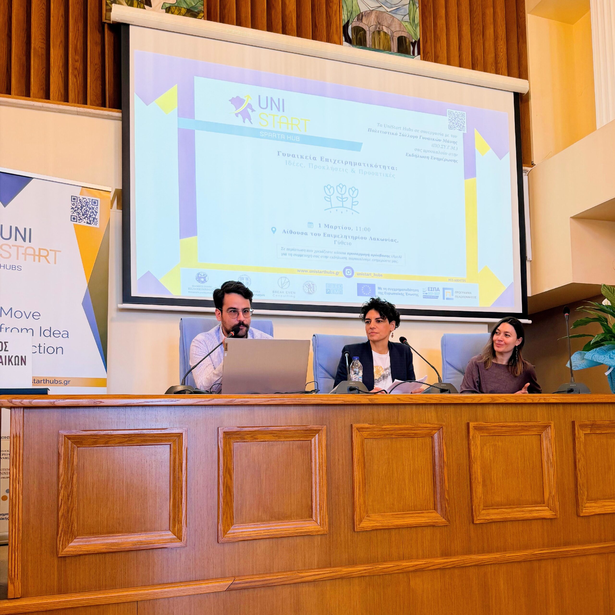 Με μεγάλη συμμετοχή επιχειρηματιών, επαγγελματιών και πολιτών από την ευρύτερη περιοχή του Γυθείου πραγματοποιήθηκε την Κυριακή 1η Μαρτίου η εκδήλωση με τίτλο «Γυναικεία Επιχειρηματικότητα: Ιδέες, Προκλήσεις & Ευκαιρίες», που διοργανώθηκε από τις Δομές Καινοτομίας και Επιχειρηματικότητας της Περιφέρειας Πελοποννήσου και του Πανεπιστημίου Πελοποννήσου, UniStart Hubs, σε συνεργασία με τον Πολιτιστικό Σύλλογο Γυναικών Μάνης.